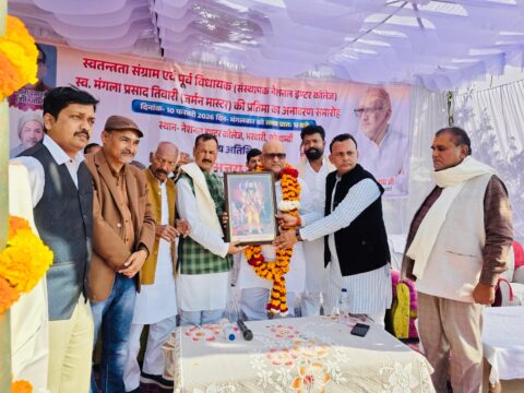 कांग्रेस प्रदेश अध्यक्ष अजय राय में स्वतंत्रता संग्राम सेनानी एवं पूर्व विधायक मंगला प्रसाद तिवारी( जर्मन मास्टर ) की मूर्ति का किया अनावरण