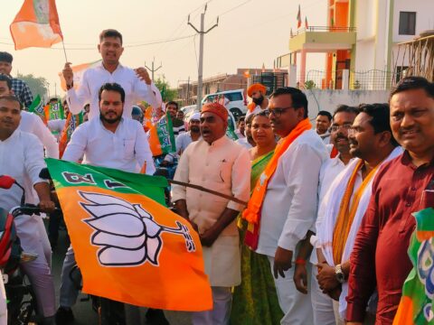 भाजपा युवा मोर्चा की बाइक रैली को जिलाध्यक्ष धर्मराज मौर्य ने पार्टी ध्वज फहरा कर किया रवाना