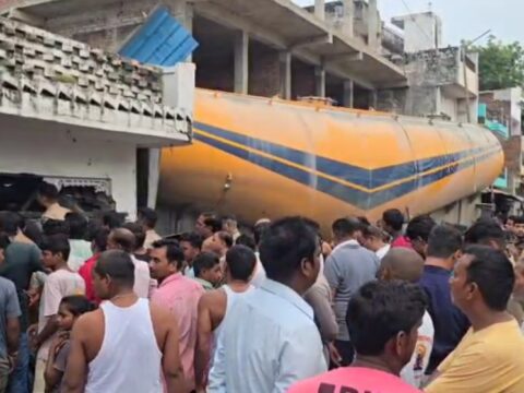 तेज रफ्तार सीमेंट का टैंकर घर में घुसा,टैंकर चालक और क्लीनर फंसे,कड़ी मशक्कत के बाद रेस्क्यू कर निकाले गए