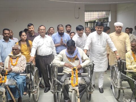 नगर पालिका परिषद मंझनपुर अध्यक्ष वीरेंद्र फौजी ने दिव्यांगजनों को ट्राईसाइकिल किया वितरित