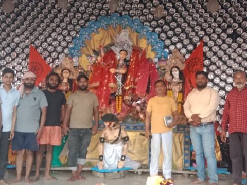 मां दुर्गा की आराधना के साथ जयकारों से गूंज उठा मंदिर परिसर,आस्था एवं विश्वाश का केंद्र बना जय मां दुर्गा पूजा समिति भरवारी का पंडाल