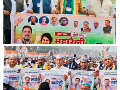 कांग्रेस की दिल्ली में आयोजित महारैली में गौरव पाण्डेय के साथ शामिल हुए कौशाम्बी के कांग्रेस कार्यकर्ता