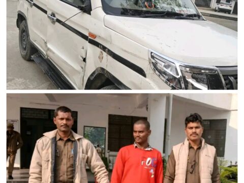 कौशाम्बी में खान निरीक्षक की गाड़ी को ट्रक ने मारी टक्कर,बाल बाल बचे खान निरीक्षक और टीम,पुलिस ने ट्रक चालक को किया अरेस्ट