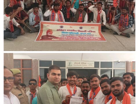 कौशाम्बी में ABVP का विभिन्न मांगों को लेकर जिला मुख्यालय पर हल्ला बोल,महंगी शिक्षा पर कंट्रोल और स्वामी विवेकानंद की मूर्ति लगाने की वकालत