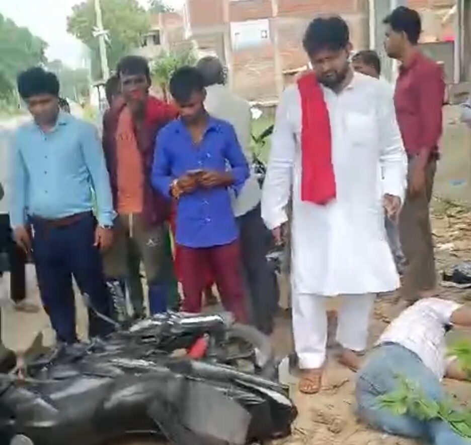 घटना संदीपन घाट थाना क्षेत्र के मूरतगंज ब्लॉक के पास की है जहा एक तेज रफ्तार कार ने बाइक सवारों को टक्कर मार दी है,बाइक सवार भरवारी निवासी ननका केसरवानी और प्राइवेट अध्यापक संजय सिंह गंभीर घायल हो गए,घटना के बाद लोगों की भीड़ जमा हो गई,लोगो ने पुलिस और एंबुलेंस को सूचना दी,सूचना के बाद पहुंची पुलिस ने घायलों को एंबुलेंस से अस्पताल भेजा जहा दोनों का इलाज चल रहा है।