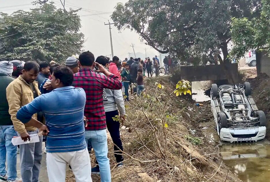 कौशाम्बी: बाइक सवार को बचाने के चक्कर में नहर में पलटी स्कॉर्पियो कार,बाल बाल बचे लोग,