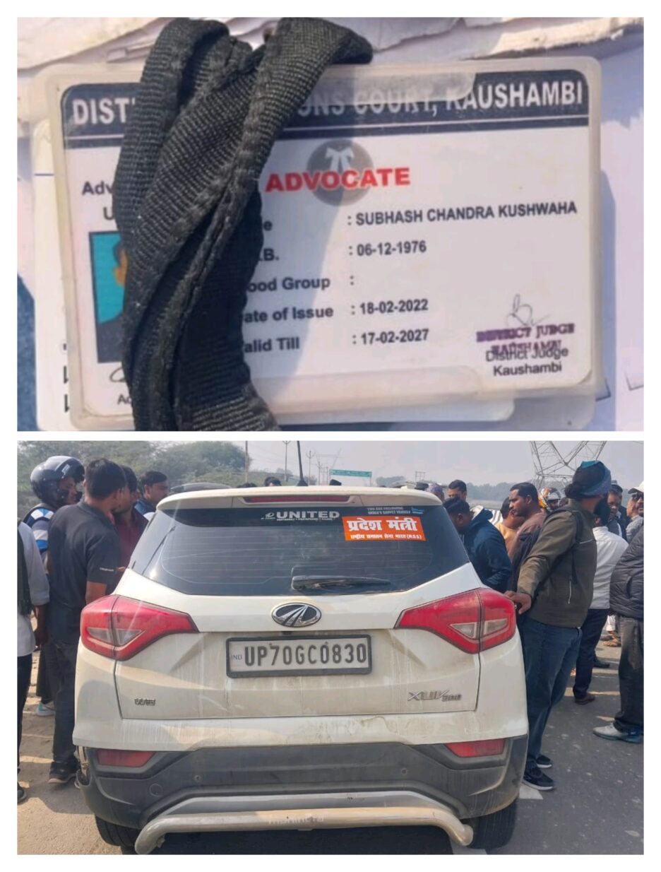 कौशाम्बी: तेज रफ्तार का कहर,पेट्रोल पंप पर पेट्रोल भराने जा रहे बाइक सवार अधिवक्ता को प्रदेश मंत्री RSS लिखी हुई कार ने मारी टक्कर,अधिवक्ता की मौत,परिजनों ने की कार्रवाई की मांग,