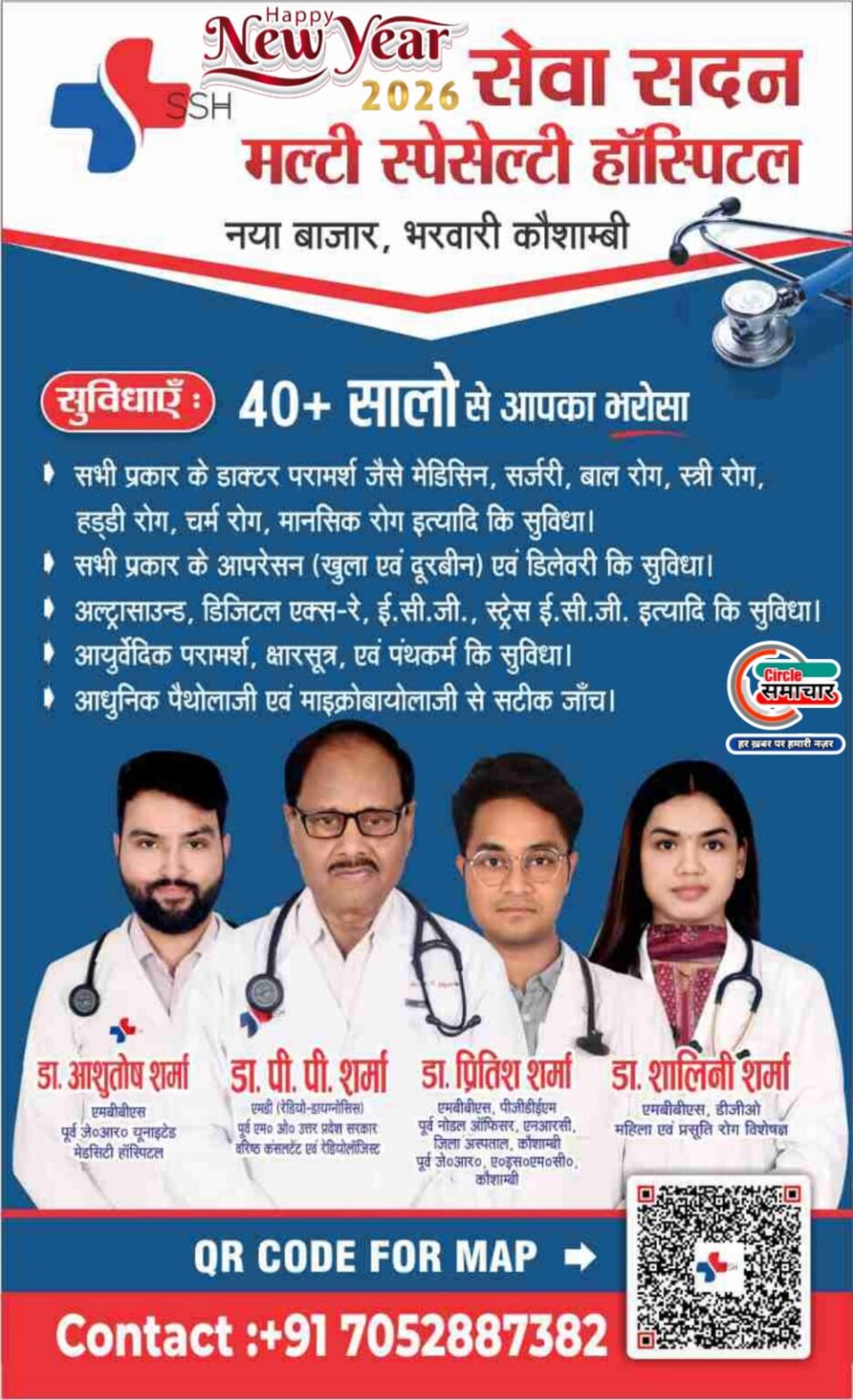 कौशाम्बी जनपद के सेवा सदन मल्टी स्पेसेल्टी हॉस्पिटल भरवारी के प्रबंधक डॉ प्रेम प्रकाश शर्मा की तरफ से सभी नगरवासियों एवं जनपद वासियों को नववर्ष 2026 की हार्दिक शुभकामनाएं