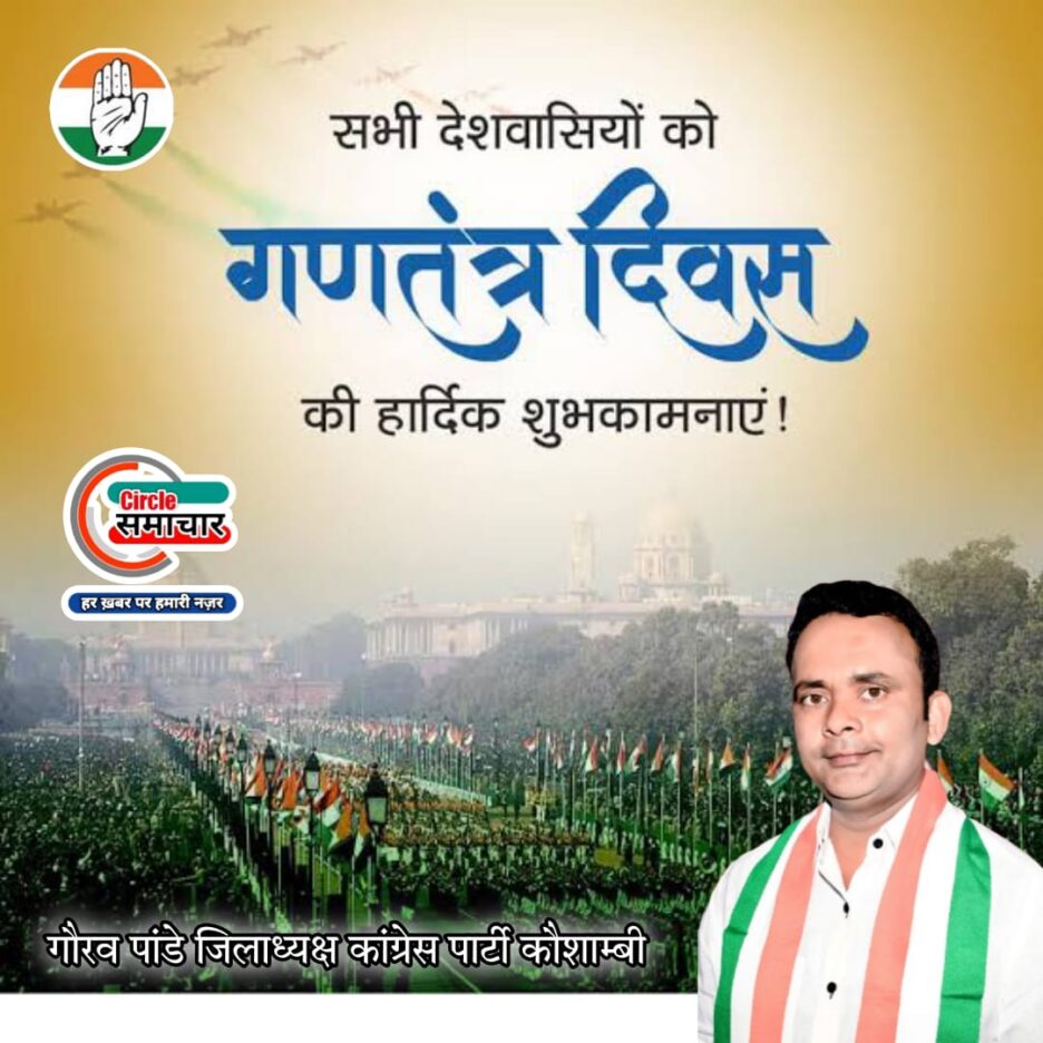 गणतंत्र दिवस: कांग्रेस पार्टी जिलाध्यक्ष गौरव पाण्डेय की तरफ से सभी जनपदवासियों को गणतंत्र दिवस की हार्दिक बधाई एवं शुभकामनाएं,