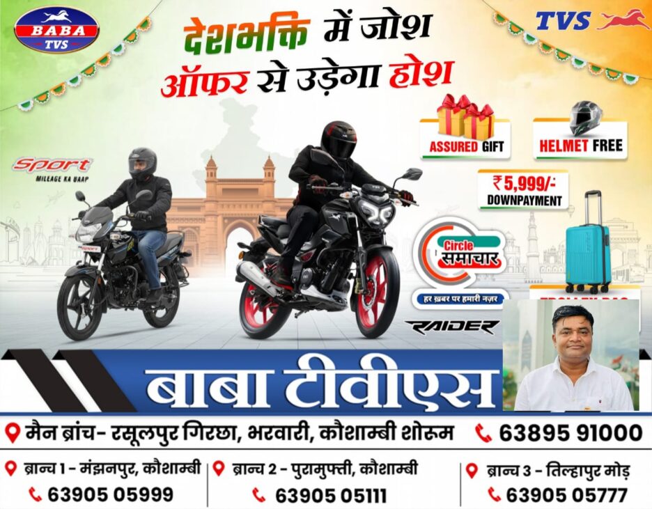 बाबा TVS भरवारी की तरफ से सभी सम्मानित ग्राहकों,कर्मचारियों,जनपदवासियों को गणतंत्र दिवस की हार्दिक बधाई एवं शुभकामनाएं।