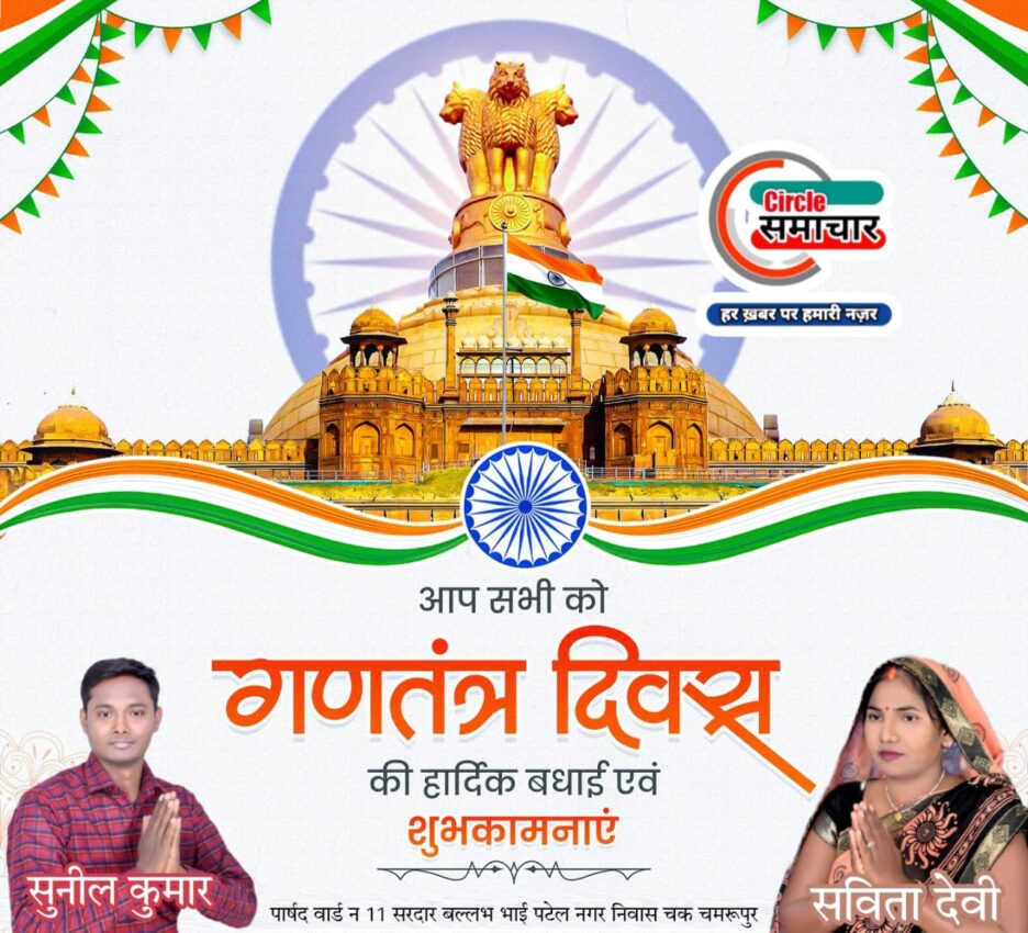 गणतंत्र दिवस: सविता देवी पत्नी सुनील कुमार पार्षद वार्ड न 11 सरदार बल्लभ भाई पटेल नगर चक चमरूपुर नगर पालिका परिषद भरवारी की तरफ से गणतंत्र दिवस की हार्दिक शुभकामनाएं,
