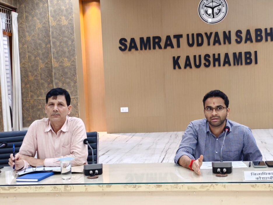 यूपी के कौशाम्बी डीएम मधुसूदन हुल्गी ने सम्राट उदयन सभागार में संबंधित अधिकारियों एवं बैंकर्स के साथ बैठक की।