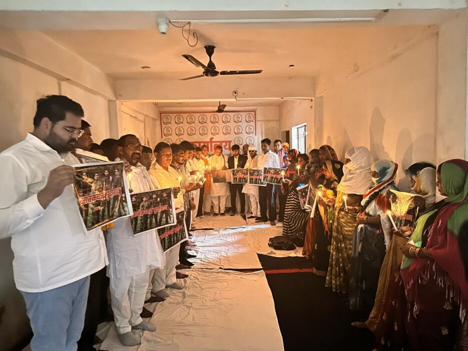जम्मू कश्मीर के पहलगाम में आतंकी हमले में शहीद यात्रियों को याद करते हुए कांग्रेस कार्यकर्ताओं ने कैंडल जलाकर दी भाव विभोर श्रद्धांजलि,
