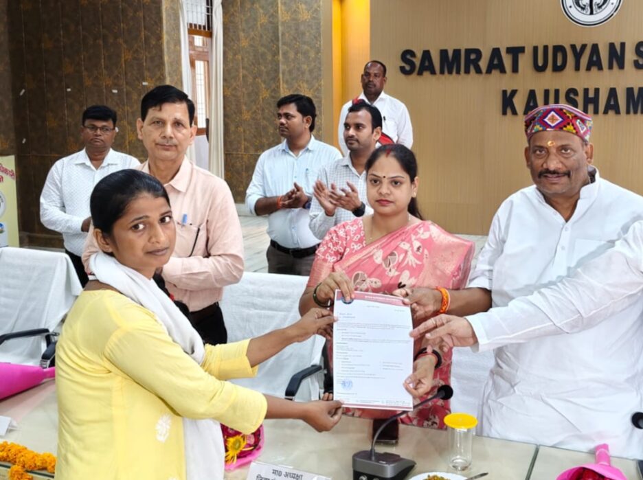 यूपी के कौशाम्बी जिले में सोमवार को आयोजित रोजगार मेले में चयनित अभ्यर्थियों को जिला पंचायत अध्यक्ष कल्पना सोनकर एवं सीडीओ विनोद राम त्रिपाठी ने विश्व युवा कौशल दिवस के अवसर पर उदयन सभागार में आयोजित कार्यक्रम में रोजगार मेले में सेवायोजित अभ्यर्थियों को नियुक्ति-पत्र प्रदान किया तथा लगाई गई कौशल प्रदर्शनी का अवलोकन किया।