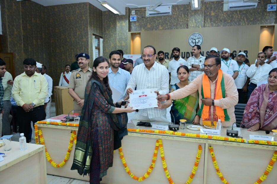 प्रभारी मंत्री ने विश्वकर्मा श्रम सम्मान योजना एवं ओ.डी.ओ.पी. टूलकिट में चयनित लाभार्थियों-नीलम, कुसमा देवी एवं वन्दना देवी को सिलाई मशीन तथा नीता को वाशिंग मशीन व शिवरानी को ओ.डी.ओ.पी. केला टूलकिट प्रदान किया। उन्होंने शिक्षा विभाग के अन्तर्गत उत्कृष्ट कार्य करने वाले अधिकारियों-डायट प्राचार्य निधि शुक्ला, प्रधानाचार्य नीरज केसरी व जिला बेसिक शिक्षाधिकारी कमलेन्द्र कुमार कुशवाहा को प्रशस्ति प्रमाण-पत्र प्रदान कर सम्मानित किया।