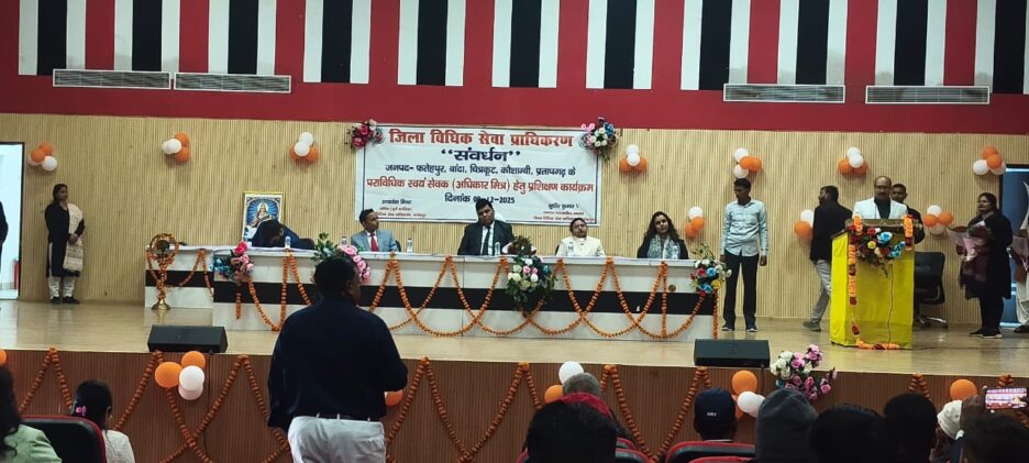 राष्ट्रीय विधिक सेवा प्राधिकरण एवं राज्य विधिक सेवा प्राधिकरण उत्तर प्रदेश के निर्देशानुसार 8 दिसंबर 2025 को जिला विधिक सेवा प्राधिकरण फतेहपुर के तत्वावधान में जनपद फतेहपुर, बांदा, चित्रकूट, कौशाम्बी एवं प्रतापगढ़ के परविधिक स्वयं सेवक (पीएलवीज)हेतु प्रशिक्षण कार्यक्रम संवर्धन का आयोजन सरदार वल्लभ भाई पटेल सभागार में किया गया।