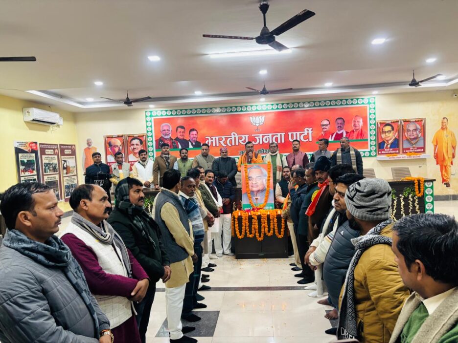 भाजपा कार्यालय एवं मां शीतला अतिथि गृह में अटल जन्म जयंती की पूर्व संध्या पर माल्यार्पण कर उनके आदर्शो को किया गया याद