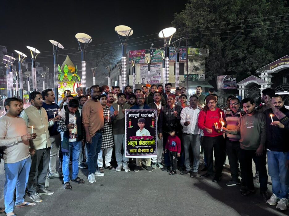 कौशाम्बी: कैंडल मार्च निकलकर व्यापारियों ने दी व्यापारी पुत्र को भावभीनी श्रद्धांजलि,