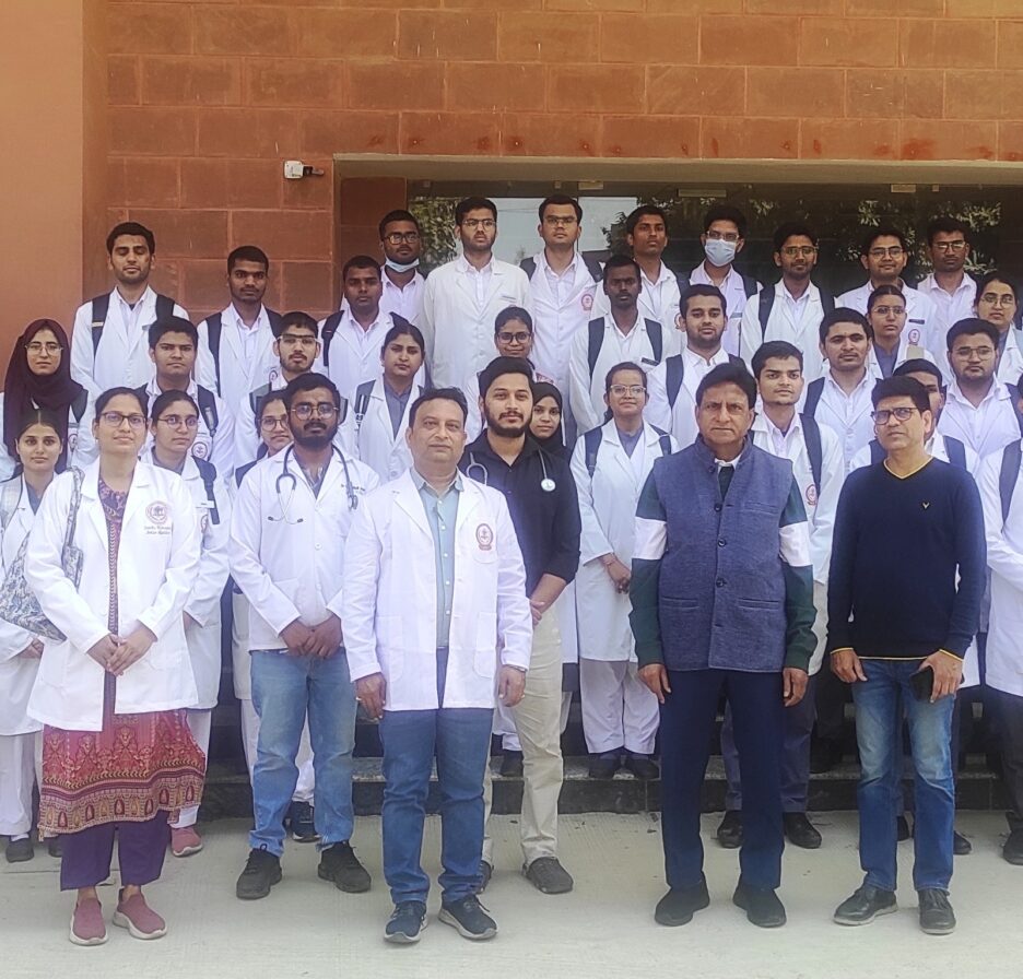 प्राचार्य डा0 हरिओम कुमार सिंह ने बताया कि राष्ट्रीय आयुर्विज्ञान आयोग का उद्देश्य है, कि MBBS विद्यार्थियों को प्रथम वर्ष से ही रोगों का व्यवहारिक एवं क्लिीनिकल ज्ञान प्रदान कराना है, जिससे वे क्लीनिकल विषयों में एनाटमी के ज्ञान का व्यवहारिक रूप से समुचित उपयोग कर सकें। डॉ0 राकेश कुमार शुक्ला सह आचार्य एवं विभागाध्यक्ष एनाटमी विभाग ने बताया कि MBBS प्रथम वष के विद्यार्थियों को मेडिसिन, सर्जरी व अर्थोपेडिक विभाग में छोटे-छोटे समूह के अर्न्तगत भ्रमण कराया गया, जिसमें अर्थोपेडिक विभाग में डॉ0 मेंहदी रत्ता व डॉ0 पंकज तिवारी ने विद्यार्थियों को फै्रक्चर, प्लास्टर तकनीक एवं आर्थोपेडिक उपकरणों की जानकारी दी।