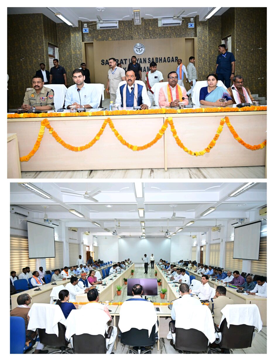यूपी के डिप्टी सीएम केशव प्रसाद मौर्य ने उदयन सभागार में जनपद के अधिकारियों के साथ बैठक की।
