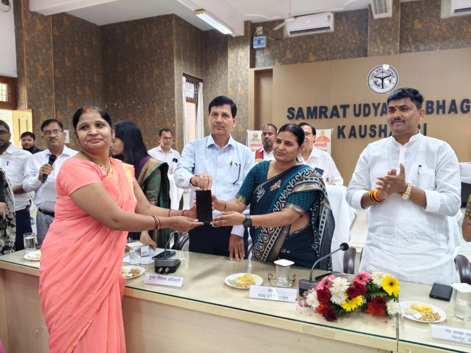 राज्य महिला आयोग सदस्य,अध्यक्ष नगर पालिका परिषद मंझनपुर एवं सीडीओ ने प्रतीकात्मक रूप से 110 आंगनबाड़ी कार्यकर्त्रियों एवं 36 मुख्य सेविकाओं को स्मार्टफोन प्रदान किया,जनपद में सभी 1775 आंगनबाड़ी कार्यकर्त्रियों को स्मार्टफोन प्रदान किया जाएगा।