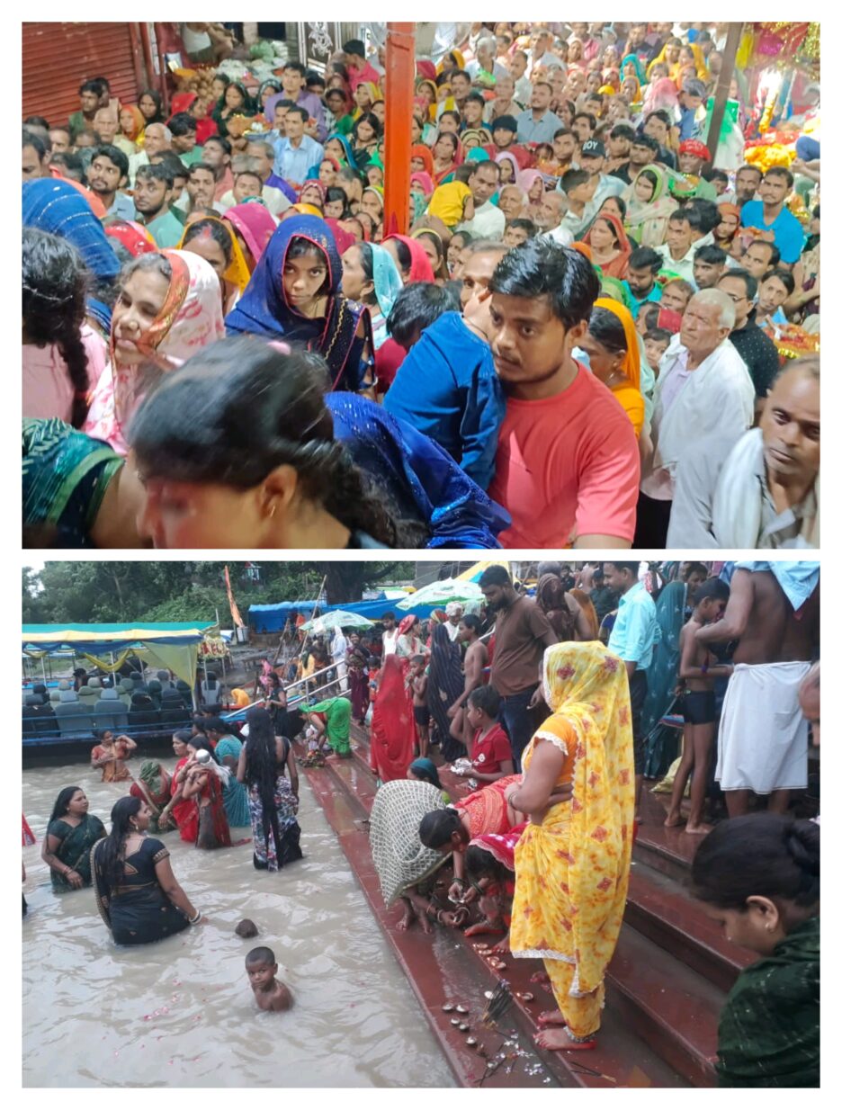 यूपी के कौशाम्बी जिले में श्रावण मास मेले के पर्व पर कड़ा माता शीतला मंदिर में शीतला सप्तमी पर सुबह से ही हजारों श्रद्धालुओं ने गंगा में डुबकी लगाई,कड़ा धाम गंगा तट पर आने वाले श्रद्धालु रात 3:00 से श्रद्धालु गंगा में डुबकी लगा रहे है ,वहीं पर समाज सेवी संगठन अपने टीम के साथ स्वयं बचाव के लिए श्रद्धालुओं को माइक के माध्यम से जागरुक कर रहे है।