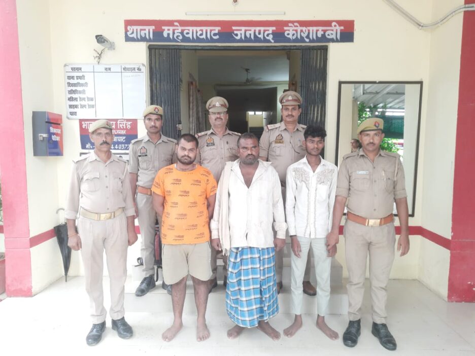 महेवाघाट थाना क्षेत्र के शाहपुर निवासी रिंकू सिंह पुत्र ज्ञान सिंह ने गुरुवार को सूचना दी थी कि अज्ञात चोरो ने उनके घर के बाहर बंधी हुई भैंस चोरी कर ली है, तहरीर के आधार पर पुलिस ने मुकदमा दर्ज कर लिया और जांच शुरू कर दी,जांच के दौरान सीसीटीवी फुटेज की मदद से पुलिस ने प्रदीप कुमार केवट पुत्र बब्बू निवासी घोघपुर थाना महेवाघाट , सचिन सिंह पुत्र भोला सिंह निवासी शाहपुर थाना महेवाघाट ,मिग्घा केवट पुत्र ननकू केवट निवासी मुबारकपुर थाना महेवाघाट को धाता मोड के पास से चोरी की हुई भैंस और पिकअप गाड़ी UP73 T 3184 के साथ अरेस्ट कर लिया।