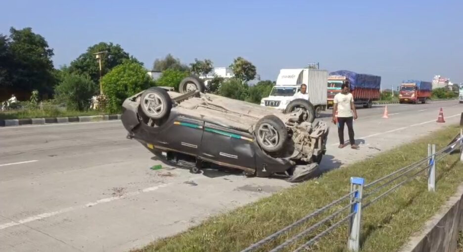 दिल्ली से प्रयागराज संगम पिता अस्थियां विसर्जित करने जा रहे परिवार की कार हाइवे पर पलटी, चालक सहित तीन घायल,