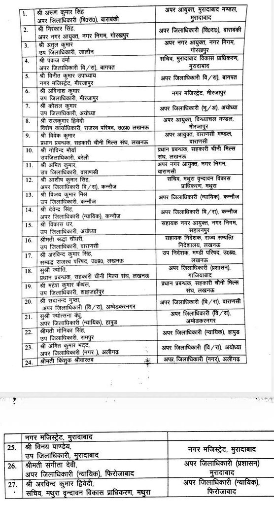 यूपी में 27 पीसीएस अफसरों का तबादला,देखे लिस्ट