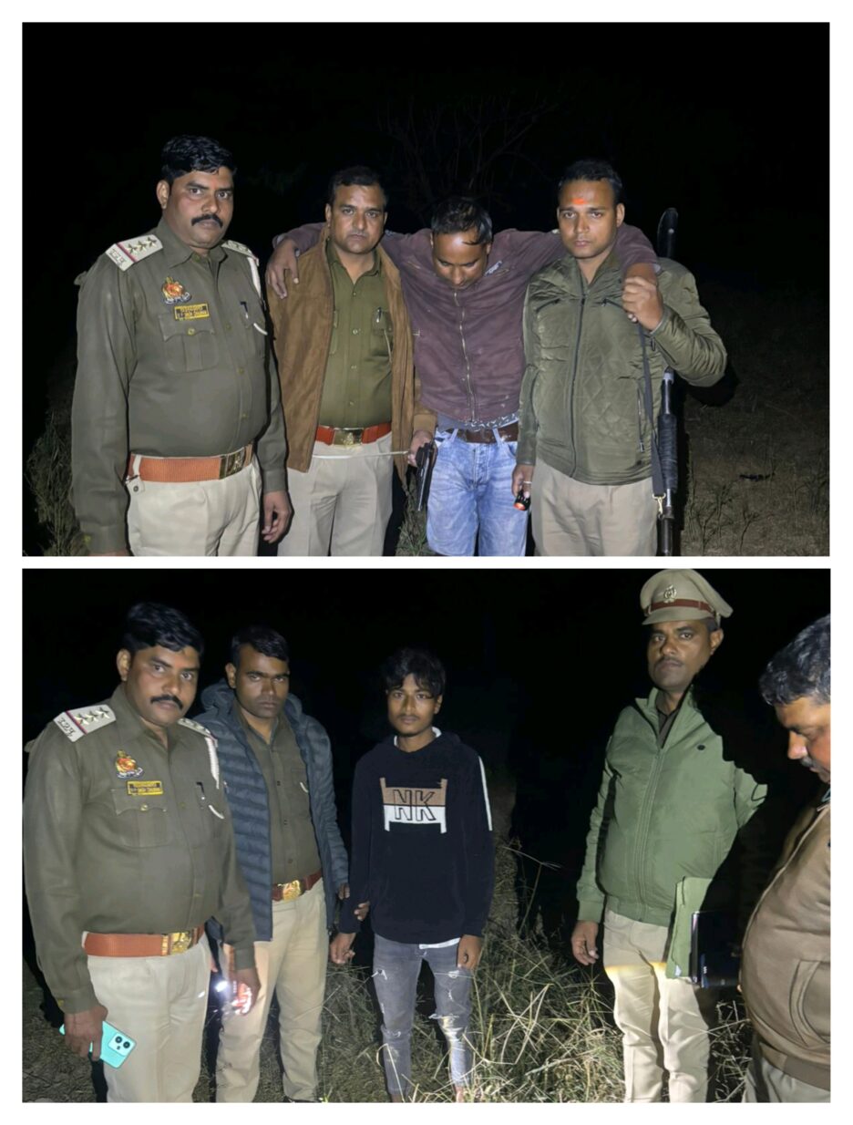 पुलिस फोर्स द्वारा आत्मरक्षार्थ जवाबी कार्यवाही मे फायर किया गया जिसमें एक गोली एक आरोपी के पैर में लगी तथा दूसरा आरोपी अंधेरे का फायदा उठाकर भागने लगा जिसको पुलिस फोर्स द्वारा घेराबंदी कर दौड़ाकर कर पकड़ लिया। आरोपियों से पूछताछ करने पर उन्होंने बताया कि घायल आरोपी का नाम सरताज उर्फ ताज पुत्र स्व0 हयातुल्ला निवासी फकीराबाद थाना सराय अकिल जनपद कौशाम्बी उम्र करीब 37 वर्ष तथा पकडे गए आरोपी का नाम निहाल पुत्र आयुब निवासी फकीराबाद थाना सराय अकिल जनपद कौशाम्बी बताया।