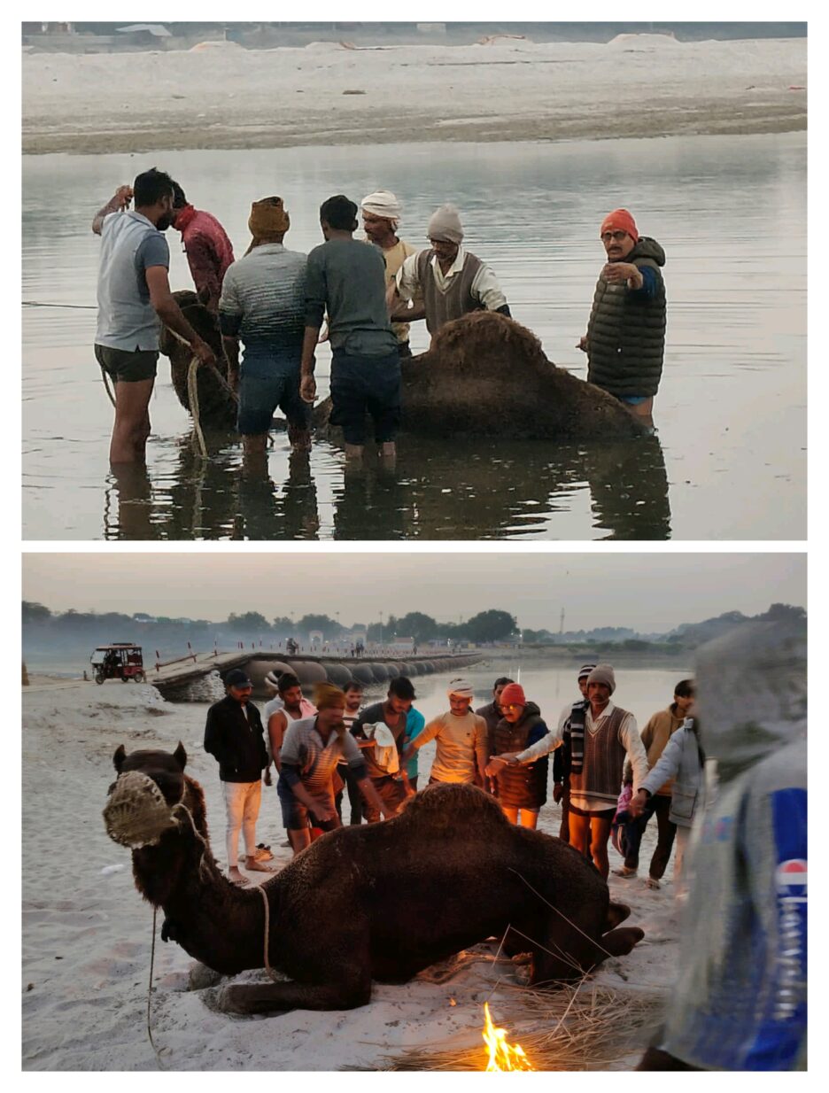 गंगा नदी में ऊंट को फंसा हुआ देखकर सोनू सोनकर, गंगा गोमती अध्यक्ष व कड़ा धाम समाजसेवी विनय कुमार पांडेय ने अपने टीम के साथ गोतनी कुंडा प्रतापगढ़ के घाट पर पहुंचे,वहां पहुंच कर गंगा नदी में घुस कर स्वयं अपनी टीम के साथ रस्सी और बल्ली के माध्यम से कड़ी मेहनत के बाद सकुशल ऊंट को बाहर निकालने में सफल हुए, उसके बाद आग जला करके ऊंट को आग तपाई गई और उसका प्राथमिक उपचार किया गया।ऊंट के मालिक ने संस्था के सभी सदस्य का आभार व्यक्त किया।
