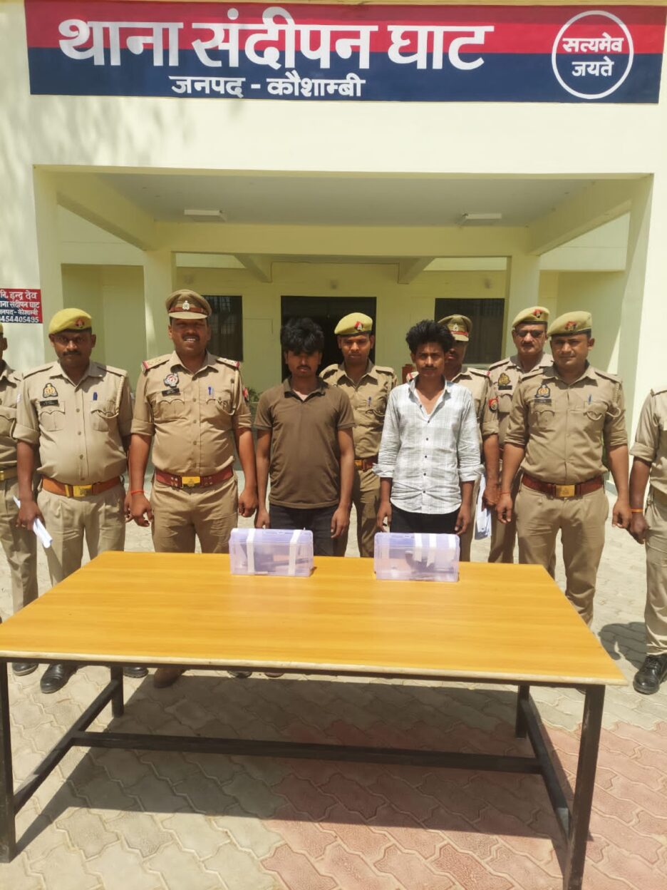 संदीपन घाट पुलिस टीम ने मुकदमे में वांछित चल रहे आरोपी अबू बकर पुत्र मो० समीम और मो0 अयान पुत्र स्व० वशी अहमद को अरेस्ट किया है। पुलिस ने आरोपियों के कब्जे से 02 अवैध तमंचा 315 बोर 04 जिन्दा कारतूस 315 बोर बरामद किया है। विधिक कार्यवाही के पश्चात आरोपियों को न्यायालय भेजा गया है।