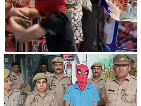 उत्तर प्रदेश, भरे बाजार स्पाइडर-मैन बनकर महिलाओं के बीच अश्लीलता कर रील बनाने वाला युवक…