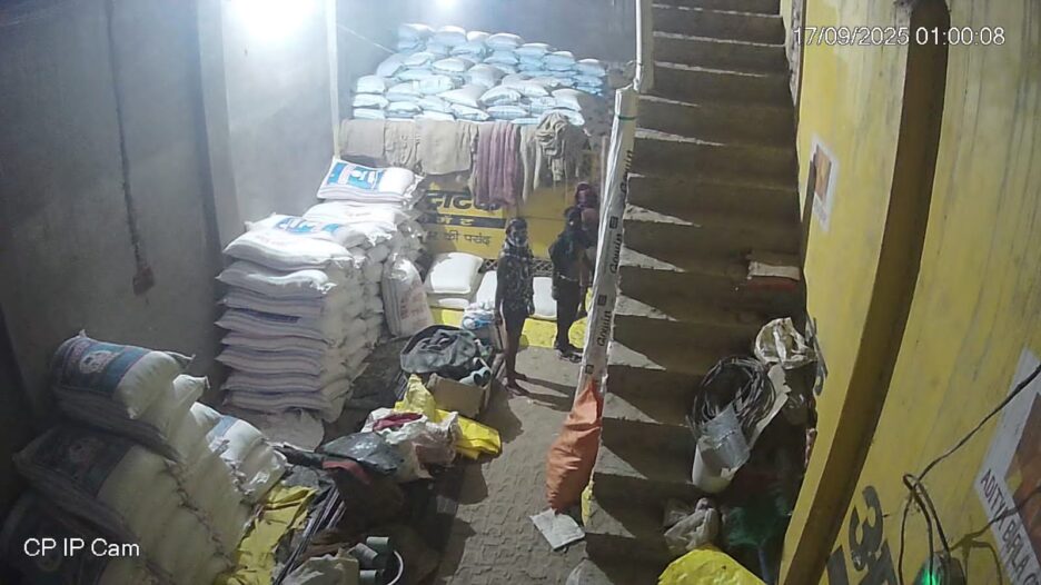 खाद-बीज की गोदाम में सेंध मार कर घुसे नकाब पोश 4 बदमाश,जमकर की लूटपाट,घटना CCTV में कैद,