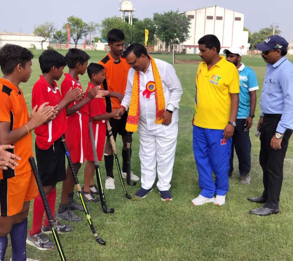 जिला पंचायत अध्यक्ष कल्पना सोनकर एवं सीडीओ विनोद राम त्रिपाठी ने खिलाड़ियों से परिचय प्राप्त करते शुक्रवार को आयोजित जिला स्तरीय (अण्डर-14) जूनियर बालक हाॅकी प्रतियोगिता का शुभारंभ किया। इस प्रतियोगिता में कुल 08 टीमों ने प्रतिभाग किया।