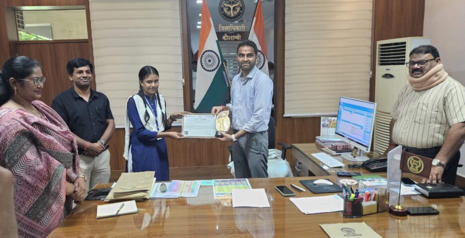 यूपी के कौशाम्बी डीएम मधुसूदन हुल्गी ने कार्यालय कक्ष में पं. दीनदयाल उपाध्याय राजकीय मॉडल इण्टर कॉलेज, केसारी की कक्षा-10 की छात्राओं मोहिनी व शाजिया खान को इंस्पायर अवार्ड 2024-25 के अंतर्गत वैज्ञानिक नवाचार एवं विचार में उत्कृष्ट कार्य के लिए अवार्ड एवं प्रमाण-पत्र प्रदान कर सम्मानित किया।