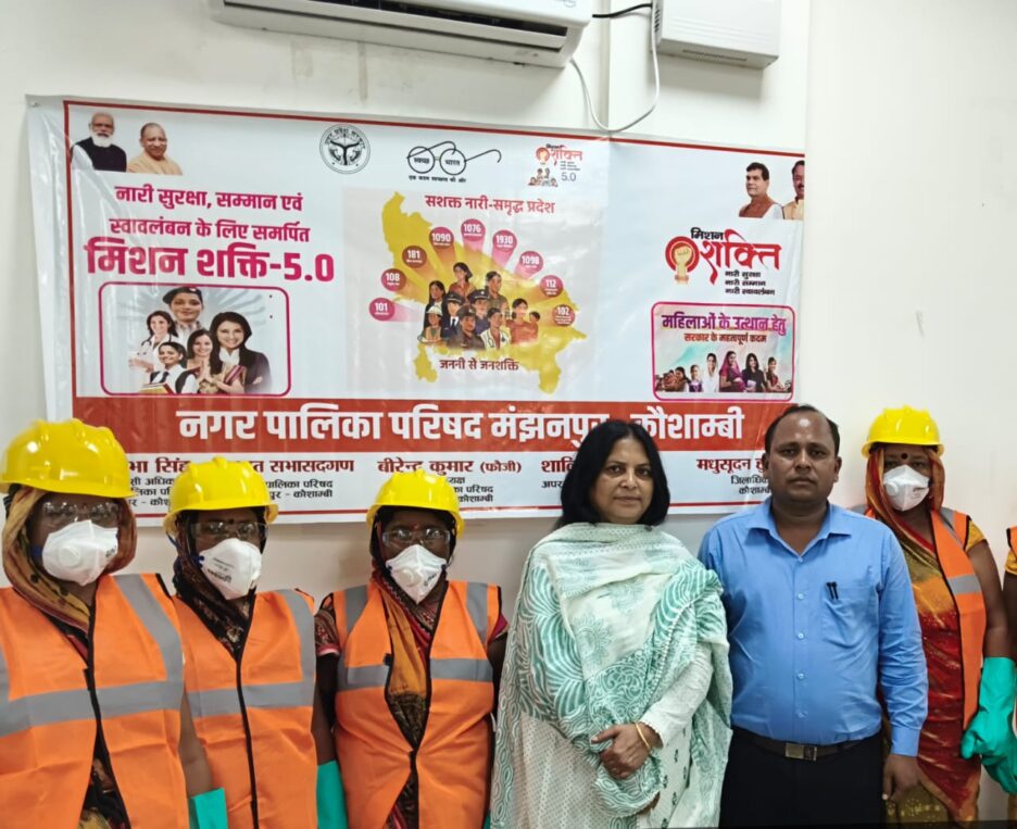 यूपी के कौशाम्बी जिले में मिशन शक्ति अभियान के अंतर्गत नगर पालिका परिषद,मंझनपुर में महिला सशक्तीकरण की दिशा में विशेष पहल की गई।नगर पालिका परिषद मंझनपुर ईओ प्रतिभा सिंह ने महिला सफाई कर्मियों को पी.पी.ई. किट वितरित किया।