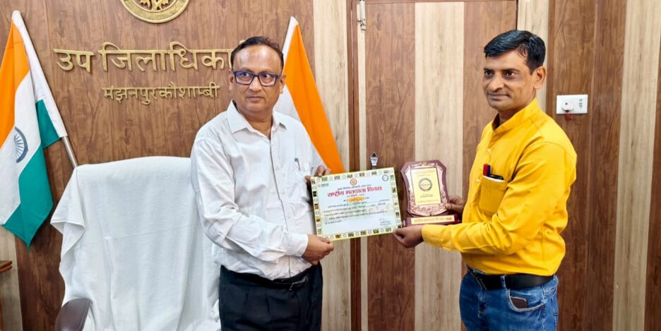 यूपी के कौशाम्बी जिले के मंझनपुर एसडीएम ने 252-मंझनपुर (अ.जा.) विधानसभा अन्तर्गत विशेष प्रगाढ़ पुनरीक्षण (SIR) से सम्बन्धित (नो मैपिंग व लॉजिकल एरर) से सम्बन्धित नोटिसों का शत-प्रतिशत वितरण एवं निस्तारण में उत्कृष्ट कार्य करने एवं तहसील मंझनपुर के निर्वाचन सम्बन्धी समस्त कार्यों में महती भूमिका निभाते हुए सर्वाधिक उत्कृष्ट कार्य किए जाने पर अखिलेश कुमार, सुपरवाईजर को मुख्य निर्वाचन अधिकारी,उ.प्र., लखनऊ द्वारा हस्ताक्षरित प्रशस्ति पत्र एवं शील्ड प्रदान कर सम्मानित किया।
