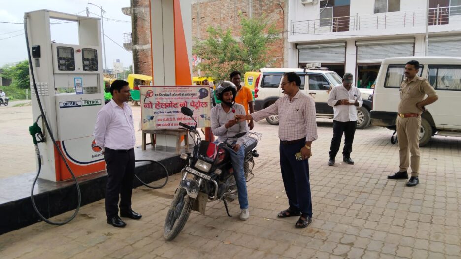 ए०आर०टी०ओ० द्वारा पेट्रोल पम्प संचालकों/मालिकों को निर्देशित किया गया कि बिना हेल्मेट दो पहिया वाहन चालकों को किसी भी परिस्थिति में पेट्रोल उपलब्ध न कराया जाय। डॉ० सन्तोष कुमार तिवारी, यात्री/मालकर अधिकारी एवं दिनेश सिंह परिहार, यातायात निरीक्षक के साथ कोखराज, कड़ाधाम एवं मंझनपुर में ‘नो हेल्मेट नो फ्यूल’ का विशेष अभियान चलाया गया एवं दो पहिया वाहन चालकों को हेल्मेट पहनने के लिए जागरूक किया गया।