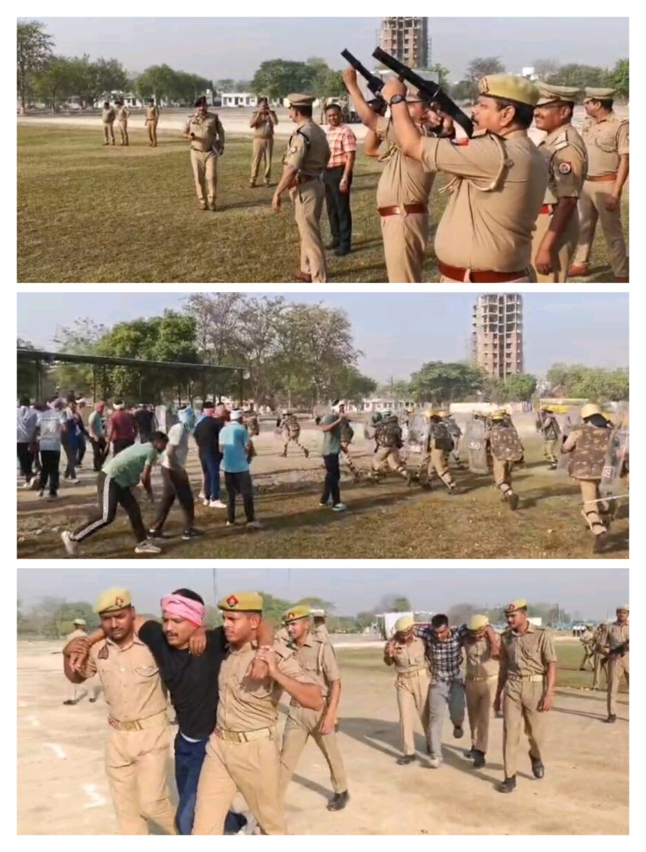 अभ्यास के दौरान पुलिस अधिकारियों एवं कर्मचारियों द्वारा दंगा नियंत्रण उपकरणों से सुसज्जित होकर बलवाई भीड़ को तितर-बितर करने के सम्बन्ध में समय-समय पर निर्गत विधिक प्रावधानों का अनुपालन करने एवं आवश्यक न्यूनतम बल प्रयोग करने हेतु टियर गैस गन, एंटी राइट गन, चिली बम, रबर बुलेट एवं हैंड ग्रेनेड आदि के प्रयोग करने का प्रशिक्षण एवं अभ्यास किया गया।
