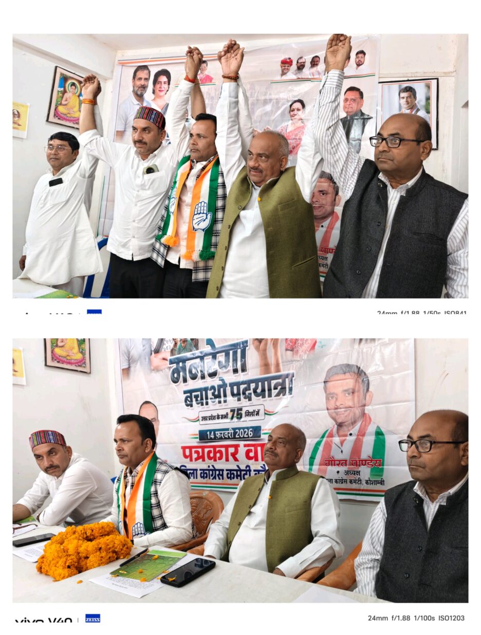 कांग्रेस पार्टी जिलाध्यक्ष गौरव पाण्डेय ने कहा कि मनरेगा बचाओ महासंग्राम अभियान का दूसरा चरण शुरू होने वाल है,इसके लिए लखनऊ में 17 फरवरी को कांग्रेस पार्टी धरना प्रदर्शन करेगी और विधानसभा का घेराव करेगी,इसके लिए कौशबी जिले से भी लगभग 500 से अधिक कार्यकर्ता लखनऊ धरना प्रदर्शन और विधानसभा के घेराव में शामिल होंगे।