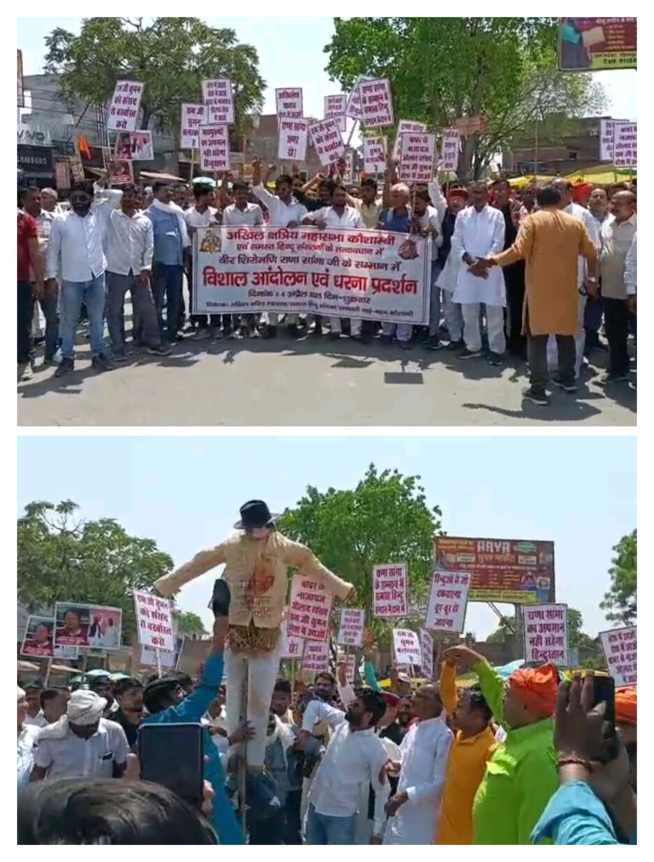 राणा सांगा पर राज्यसभा सांसद की टिप्पणी के विरोध में अखिल क्षत्रिय महासभा ने किया प्रदर्शन,पुतला दहन के बाद राज्यसभा सभापति को संबोधित सौंपा ज्ञापन