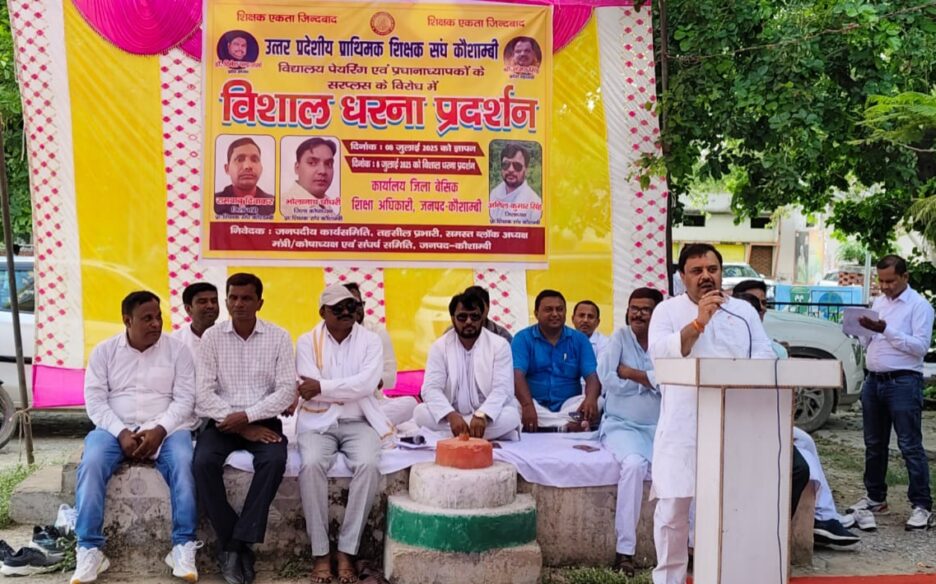 यूपी के कौशाम्बी जिले में विद्यालय मर्ज किए जाने और प्रधानाध्यापक पद के सरप्लस किए जाने के विरोध में जिलाध्यक्ष अनिल सिंह के नेतृत्व में प्राथमिक शिक्षक संघ ने जिला बेसिक शिक्षा अधिकारी के कार्यालय पर विशाल धरना प्रदर्शन कर मुख्यमंत्री उत्तर प्रदेश सरकार को संबोधित ज्ञापन डीएम मधुसूदन हुल्गी को सौंपा है।