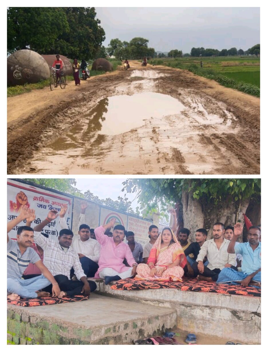 सड़क निर्माण में हो रही हीलाहवाली को लेकर ग्रामीणों में आक्रोश,ग्रामीणों के साथ धरने पर बैठी जिला पंचायत सदस्य,लगाया अनदेखी का आरोप,