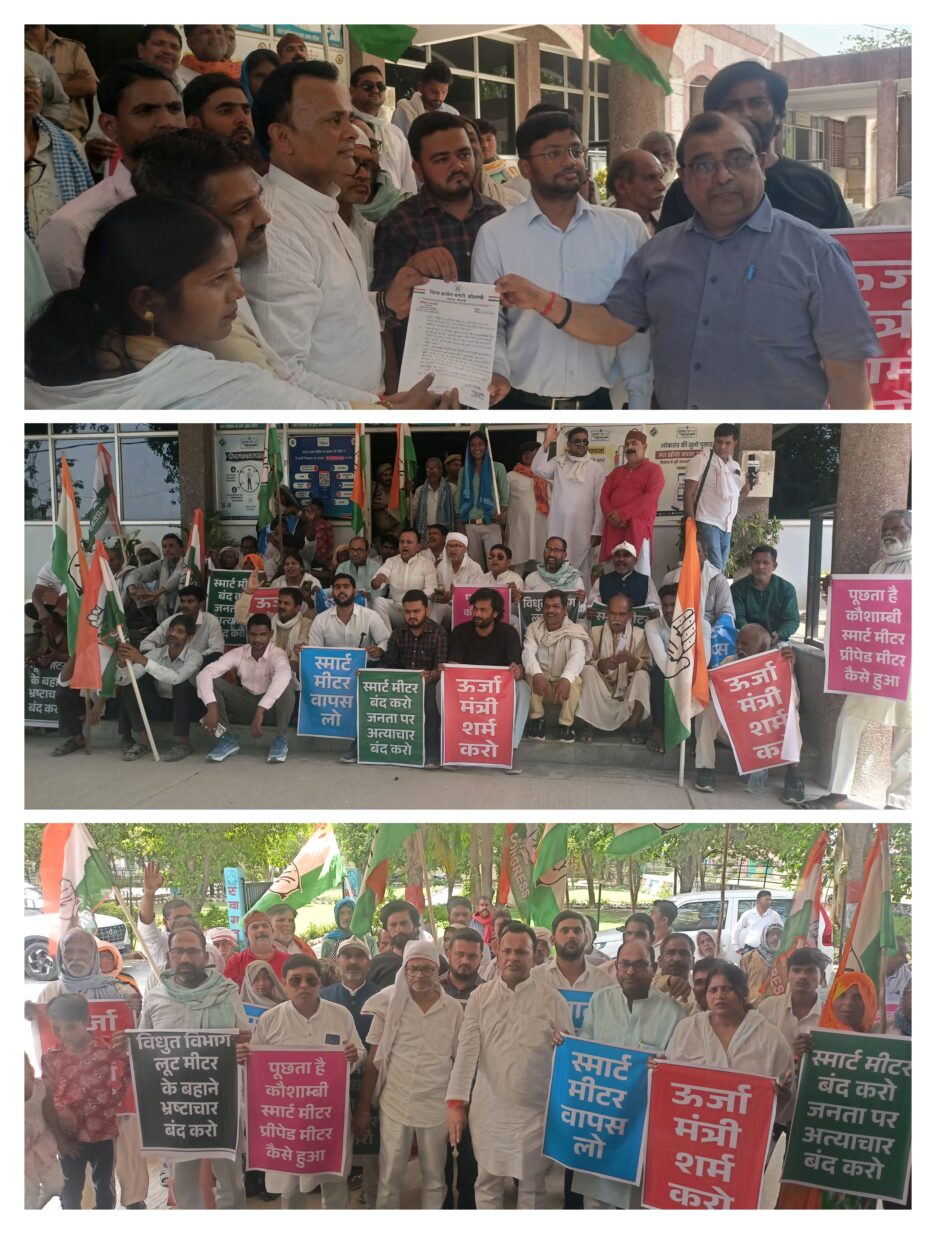 कौशाम्बी: स्मार्ट मीटर को लेकर कांग्रेस ने किया प्रदर्शन,जिलाध्यक्ष बोले भाजपा ने गृहमंत्री अमित शाह के बेटे की कंपनी का लगवा दिया गरीबों को लूटने वाला स्मार्ट मीटर,