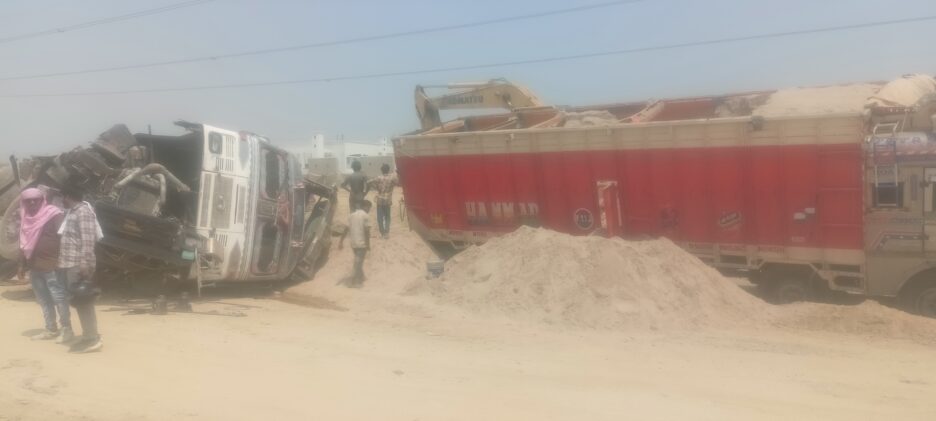 कौशाम्बी में नहीं रुक रहा ओवरलोड बालू का परिवहन,दो ओवरलोड बालू की ट्रक हाइवे पर पलटी,रास्ता बंद,आवागमन बाधित,